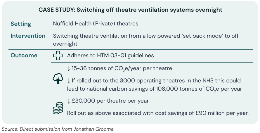 Figure 2. Switching off theatre ventilation contributes to NHS resilience. From UK Health Alliance on Climate Change (2023).